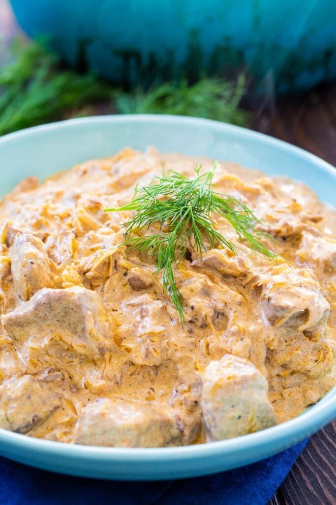 - Traditionally served with nokedli (dumplings), but also great with boiled potatoes, rice, or crusty bread.