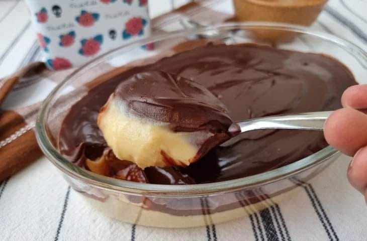 9. Despeje a ganache por cima do creme, espalhando bem e leve para a geladeira por pelo menos 2 horas;