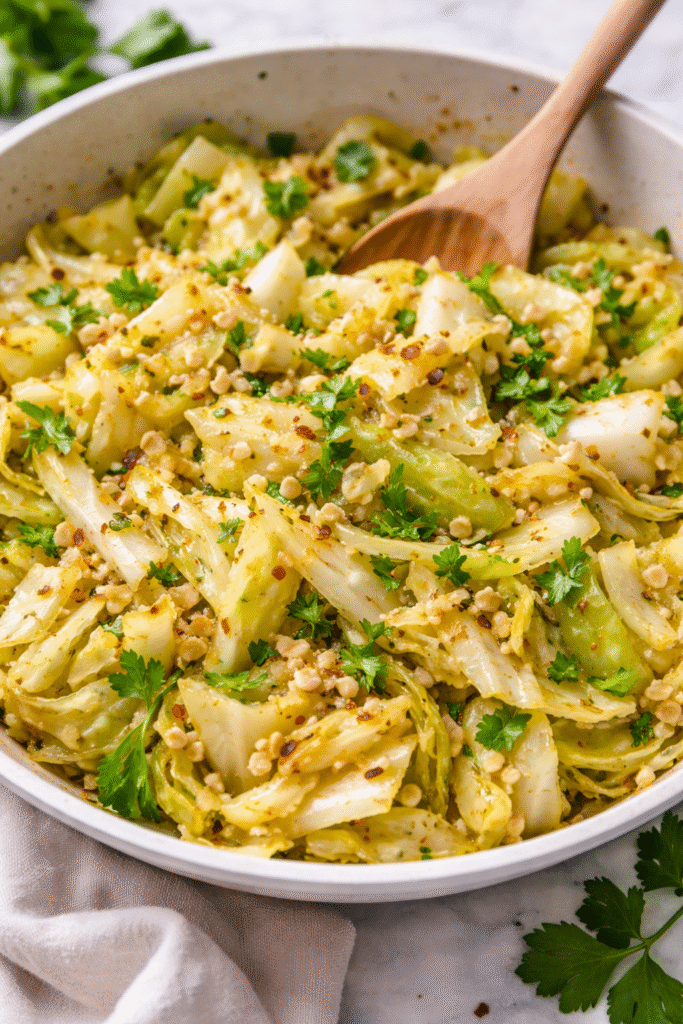 Serve this Garlic Butter Cabbage alongside roasted chicken, grilled fish, or as a bed for poached eggs. For an elevated presentation, serve in a warmed bowl and drizzle with extra virgin olive oil and a sprinkle of smoked paprika. This versatile side pairs beautifully with bold red wines like Cabernet Sauvignon or crisp whites like Sauvignon Blanc.