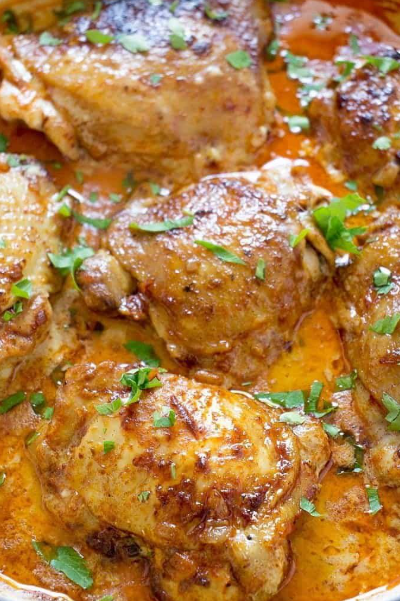 Remove the pot from heat, sprinkle in the sweet paprika, and stir immediately to prevent burning. Return to low heat. - Add chicken