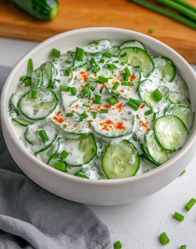 Here’s a delicious and simple recipe for Refreshing Hungarian Cucumber Salad (Uborkasaláta) 🇭🇺: